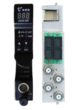 GSOR-RRX回傳光接收模塊由低噪聲的PIN光電二極管和高輸出電平的射頻放大器組成,具四路光輸入端口及兩路射頻輸出端口,可提供45dBmV的射頻輸出電平?;貍鞴饨邮漳K具有嵌入式單片機處理電路,可通過訪問其前面板之LED或EMS設備管理模塊來獲取其參數信息。